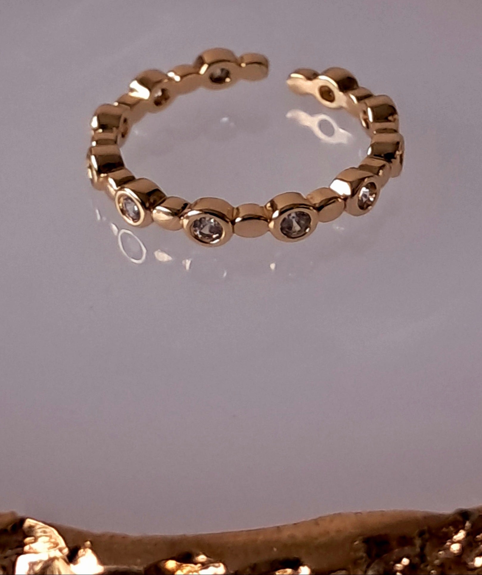 O Anel Alice combina o charme da zircónia com a resistência do aço inoxidável, criando um acessório durável e brilhante. Também ajustável, adapta-se facilmente, sendo uma peça prática e elegante para o dia a dia. Em dourado, este anel é ideal para quem procura um toque de sofisticação.