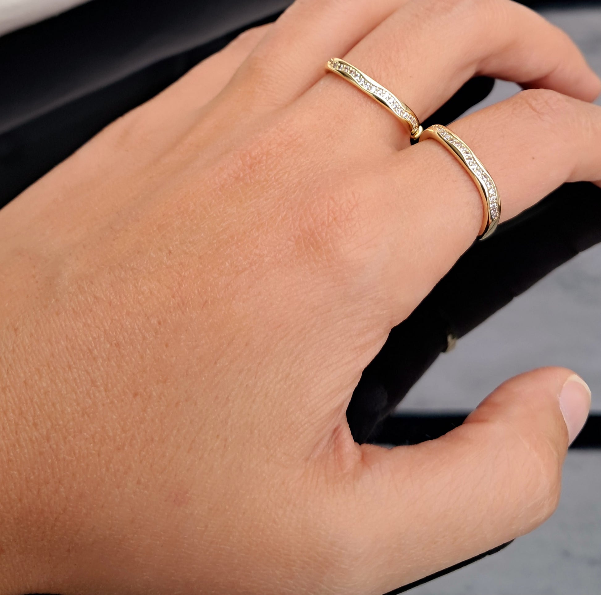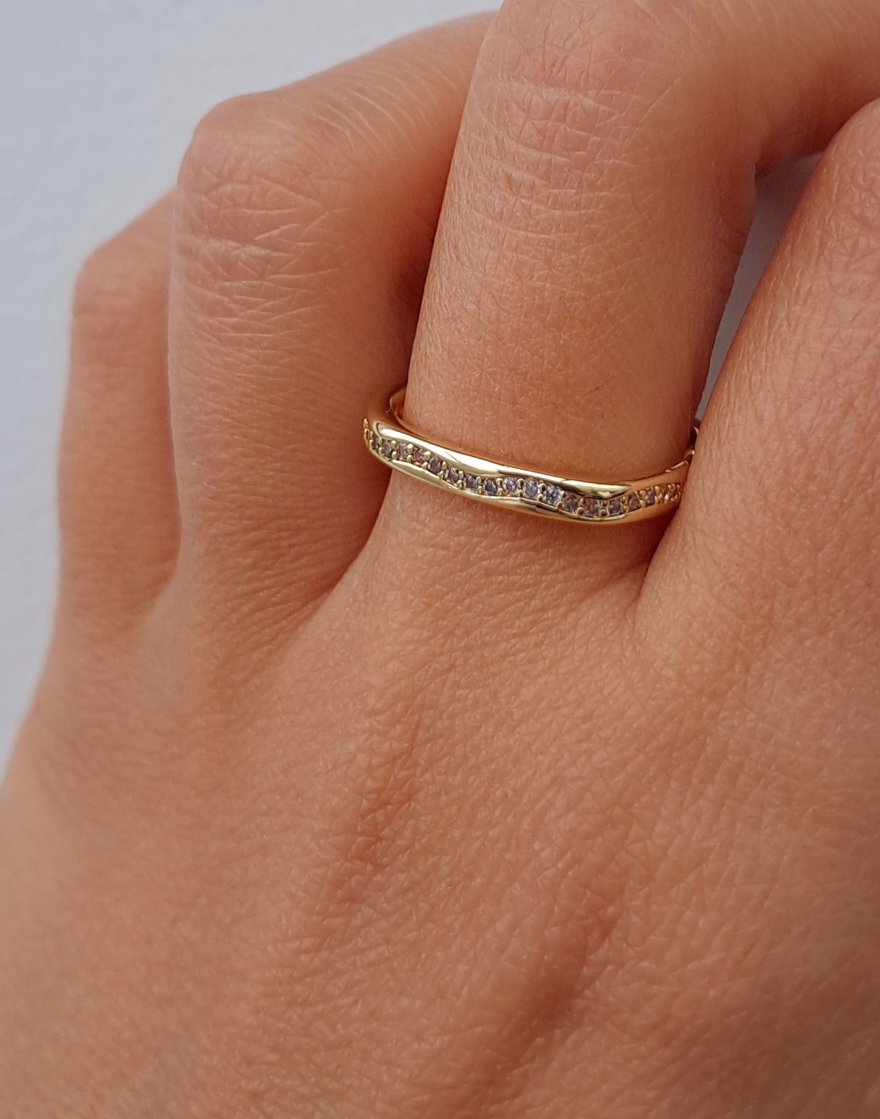 Elegante anel ajustável, fabricado em aço inoxidável e adornado com uma zircónia brilhante, combinando sofisticação e durabilidade.