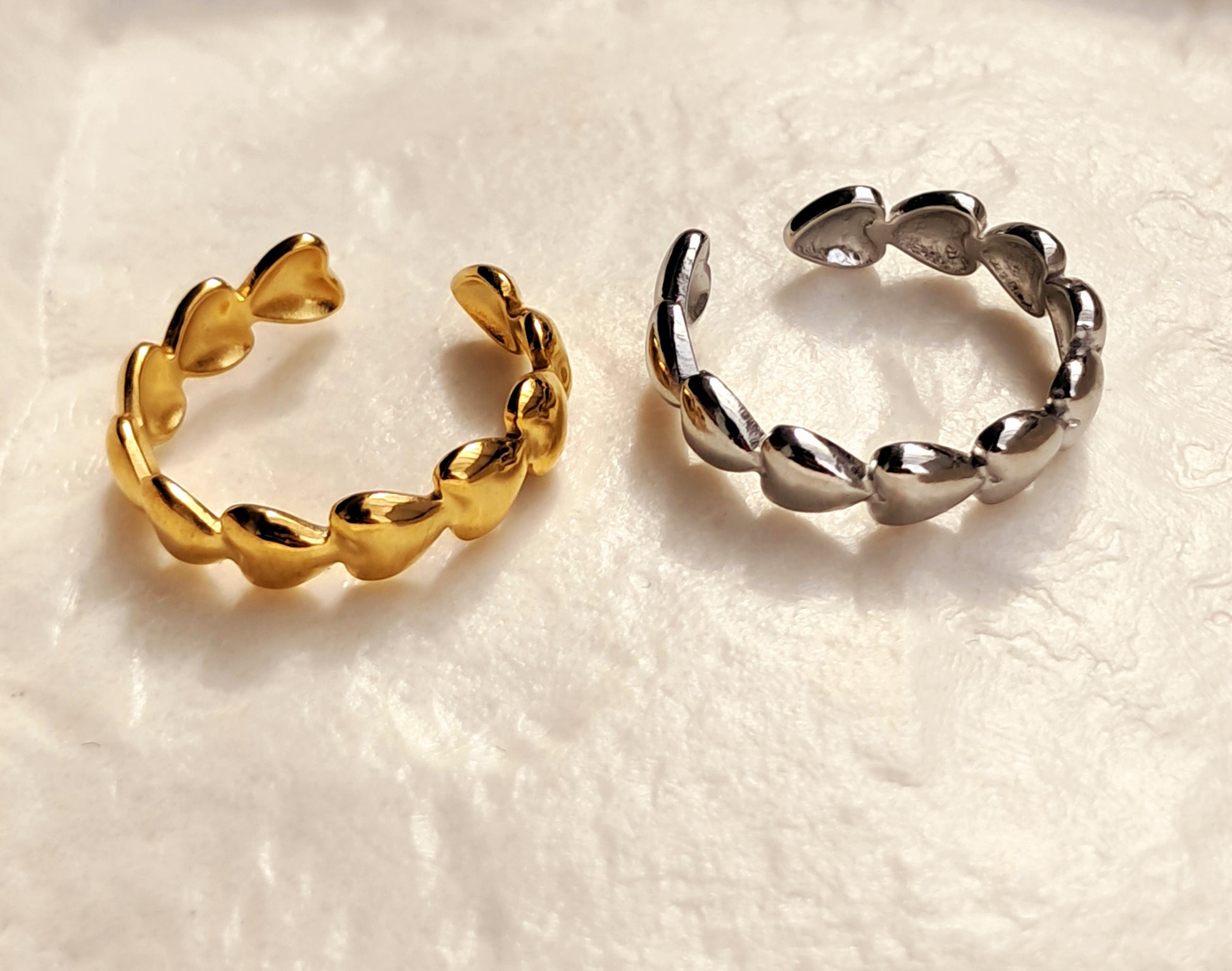 Este anel ajustável em aço inoxidável oferece a opção de acabamento em dourado ou prateado. Elegante e contemporâneo, o anel Lover é perfeito para expressar o teu estilo de forma única e sofisticada.