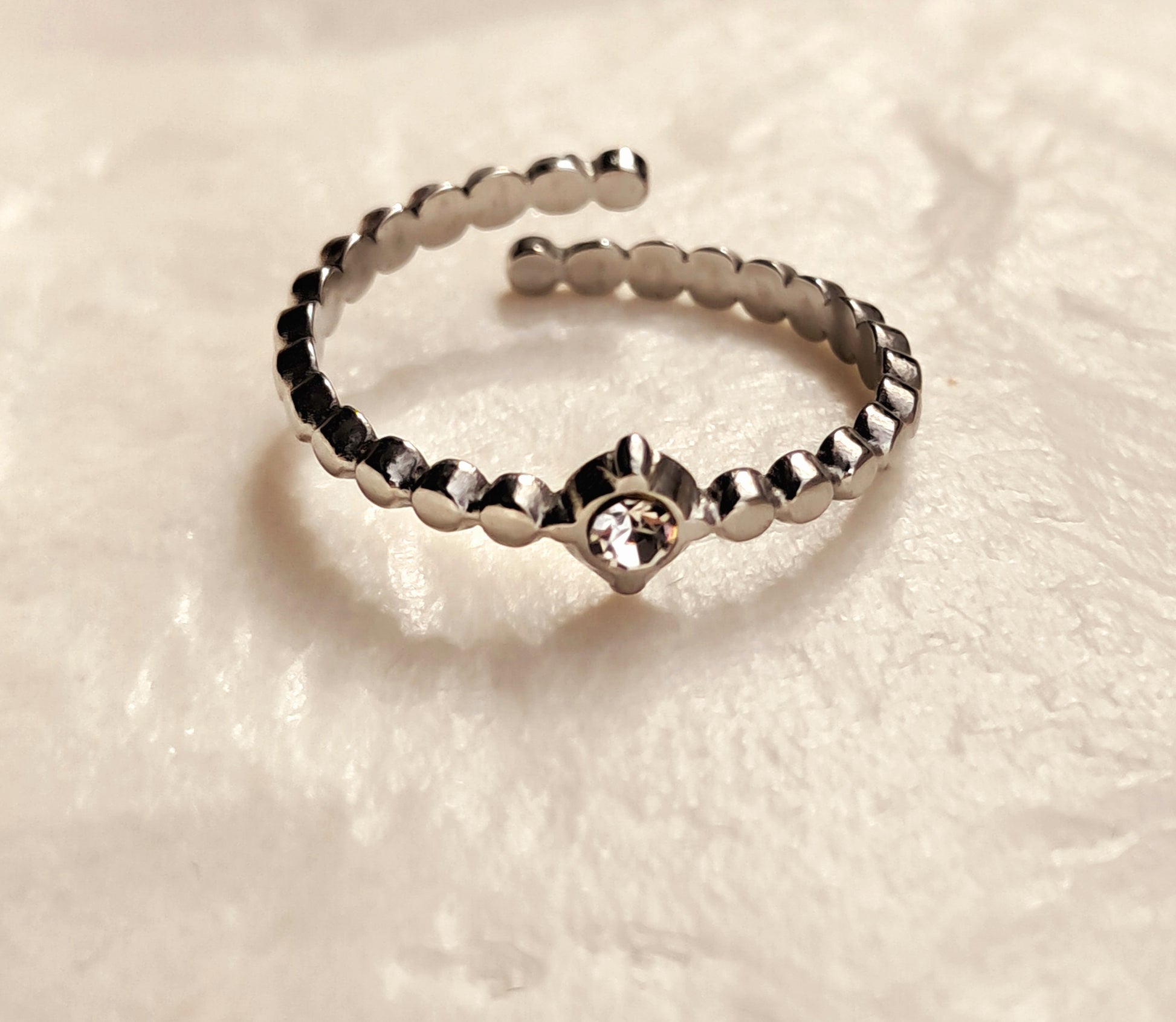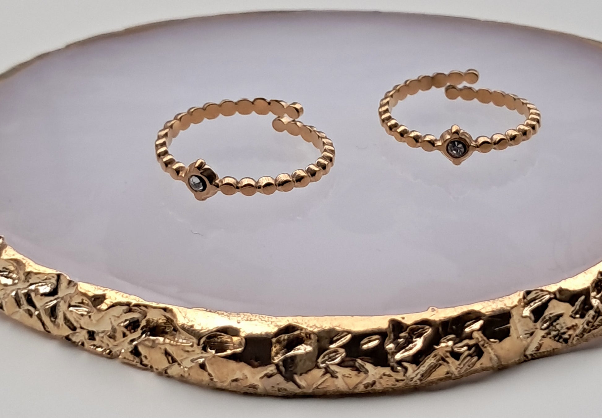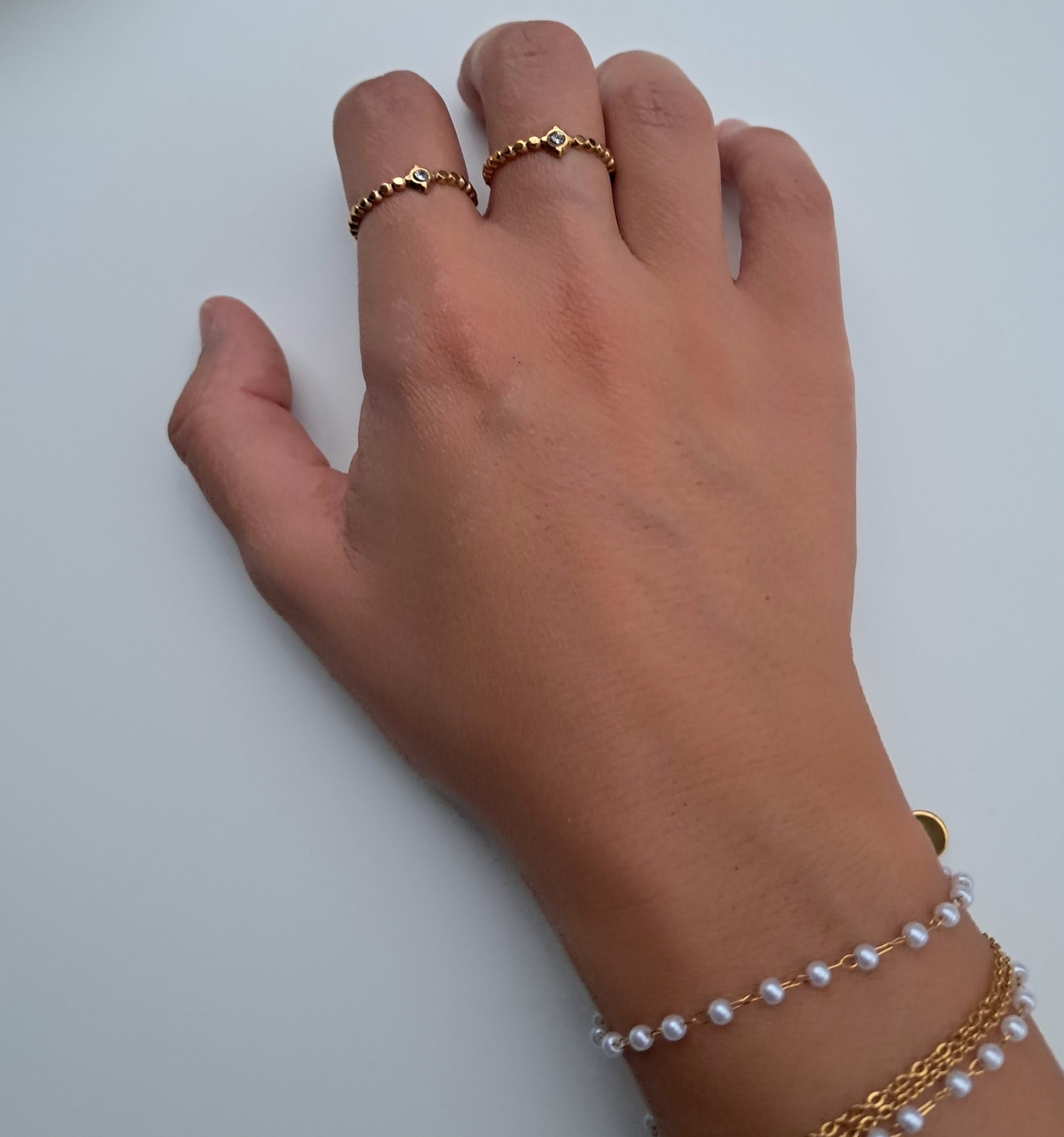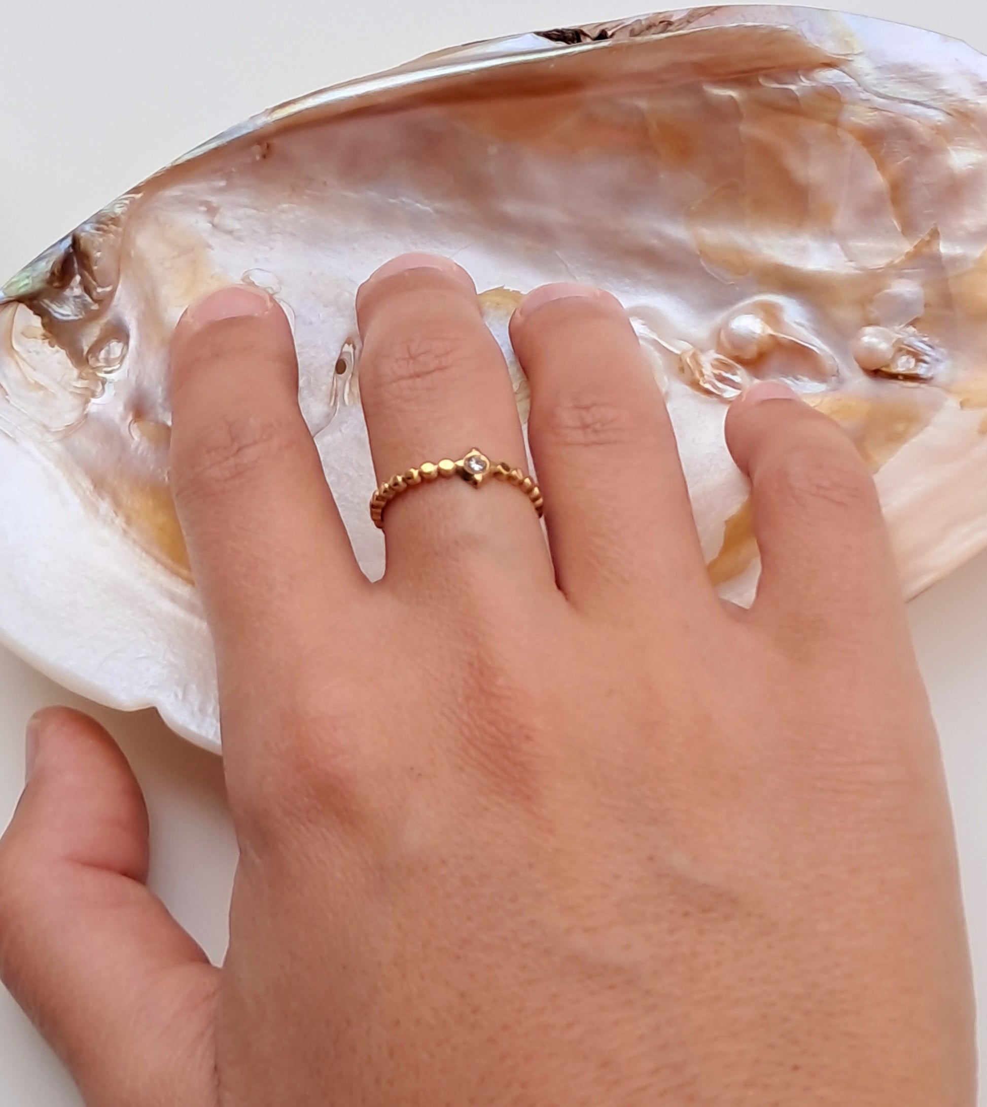 O anel Mara combina aço inoxidável e zircónia, criando um brilho adicional e um design luxuoso. Disponível em dourado e prateado, é uma peça ajustável que oferece sofisticação e charme para qualquer ocasião especial.