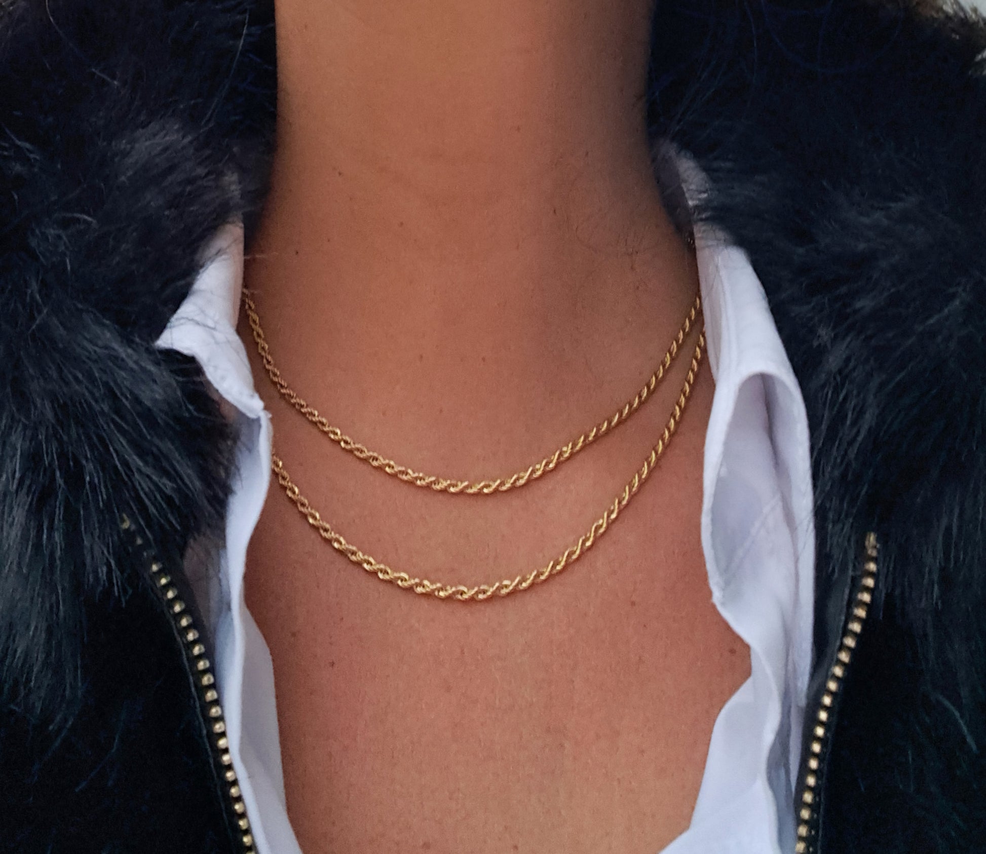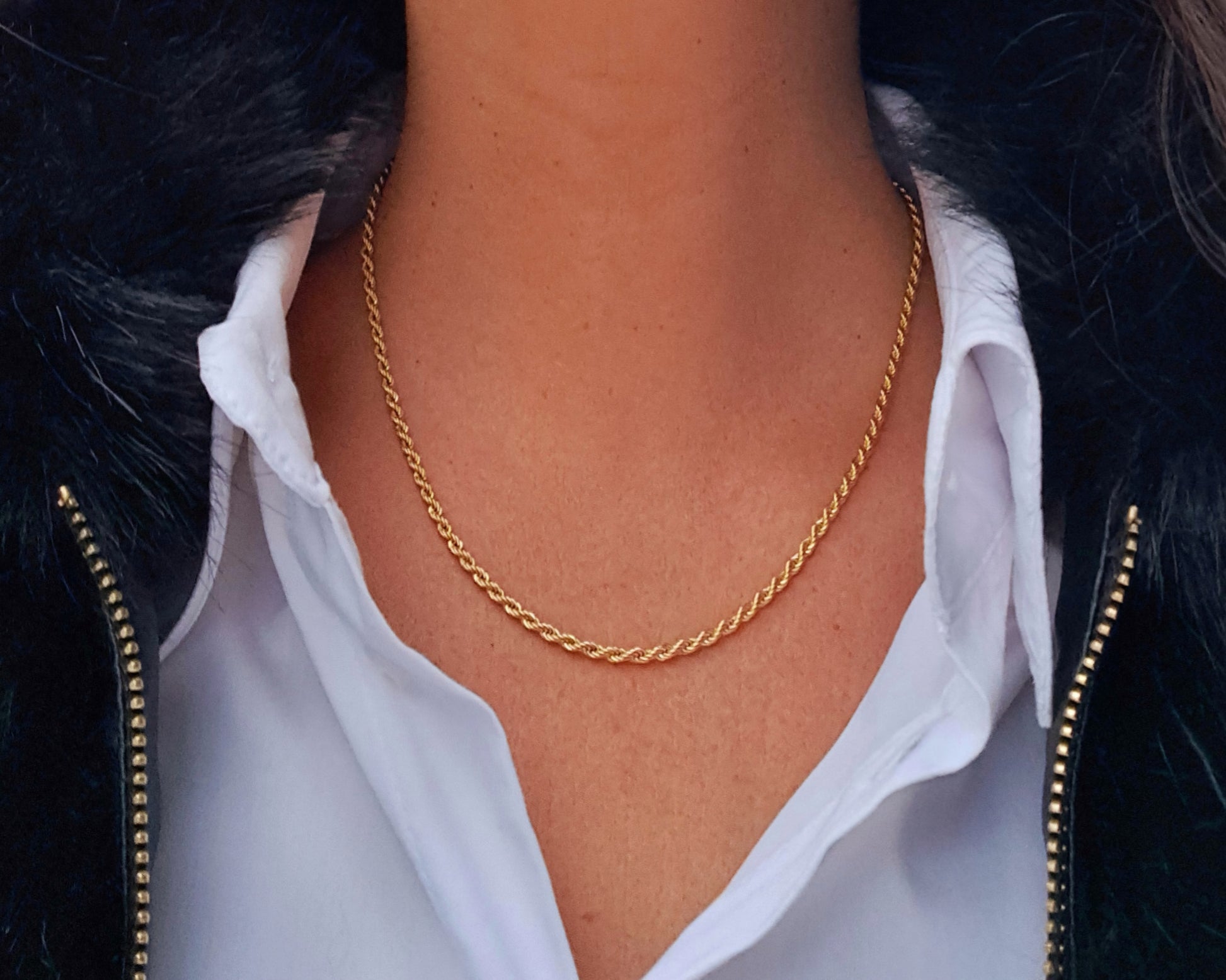 Com um design refinado, este colar de 2 mm de espessura em aço inoxidável dourado é perfeito para um look delicado e sofisticado. Ideal para combinar com outras peças.