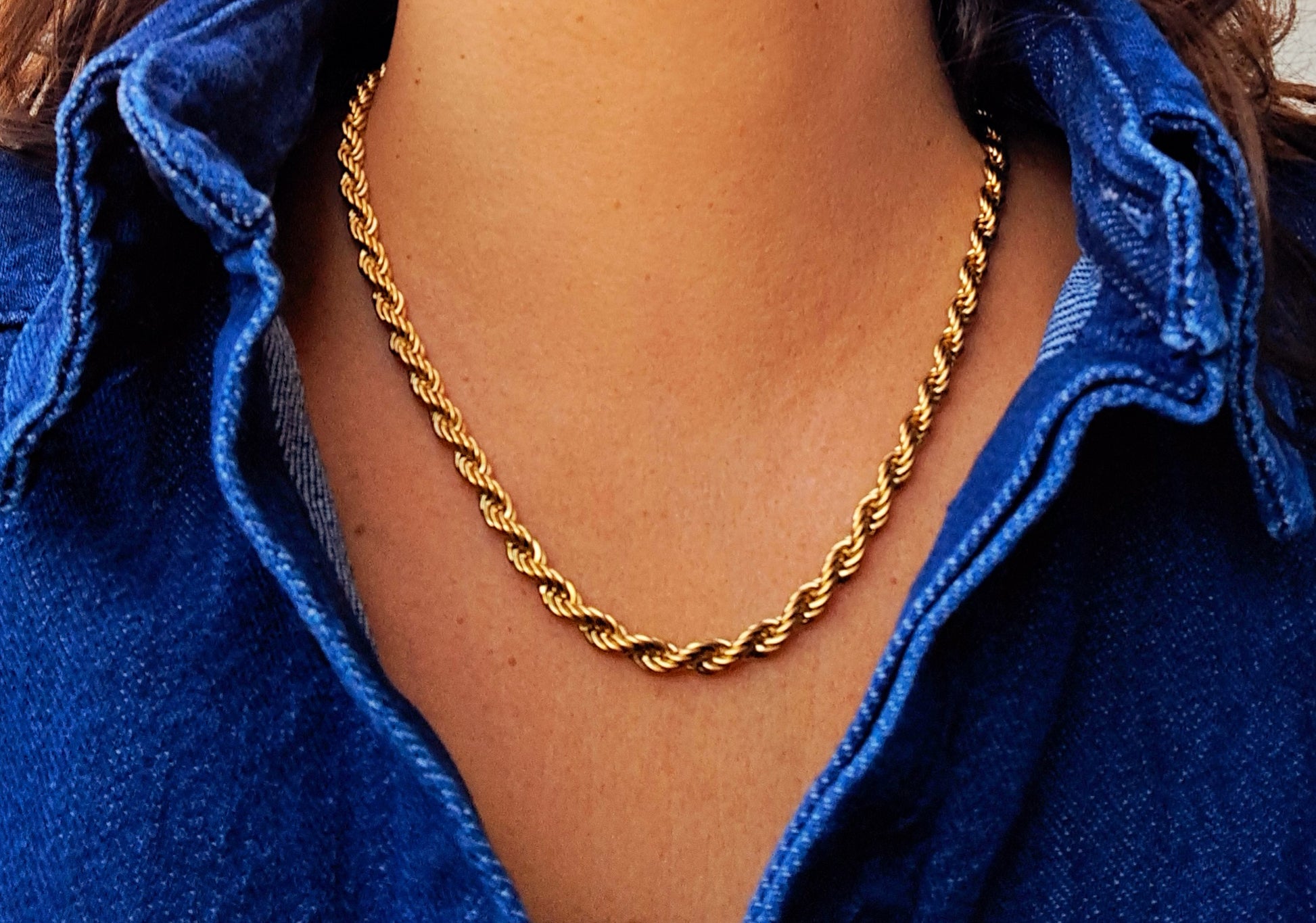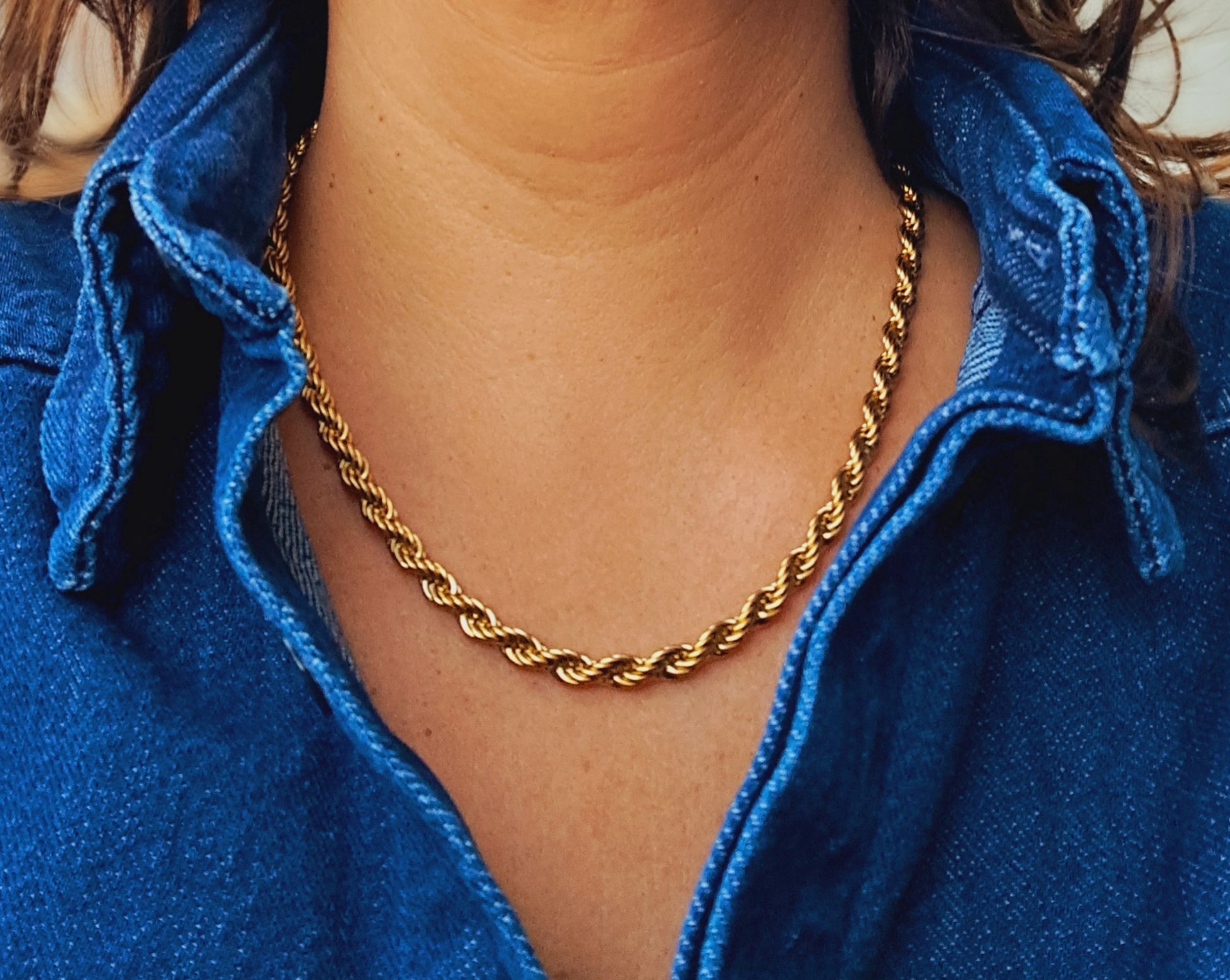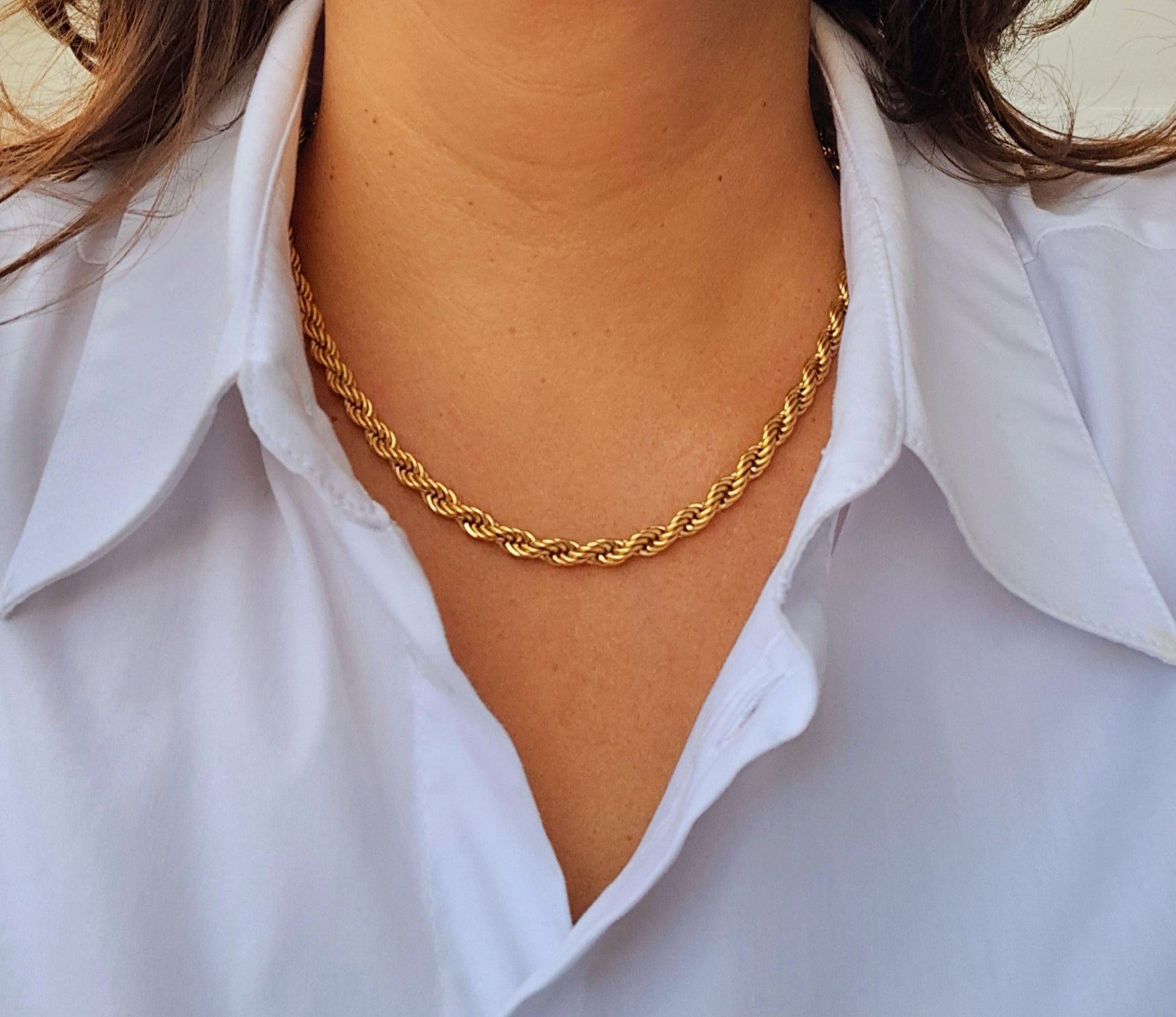 O colar Becky de 5 mm de espessura é a definição de elegância ousada. Feito em aço inoxidável dourado, combina presença e estilo num só acessório.