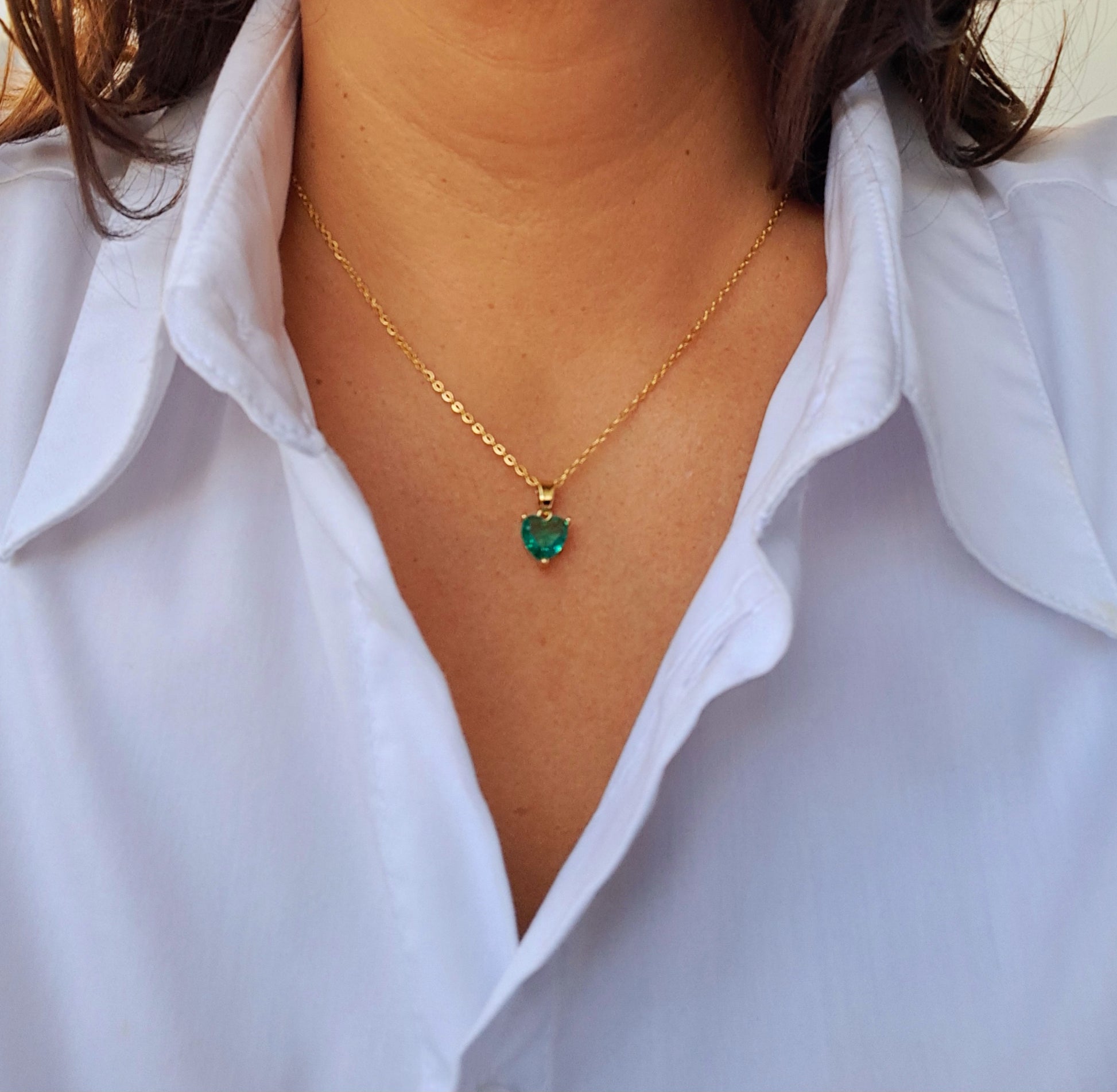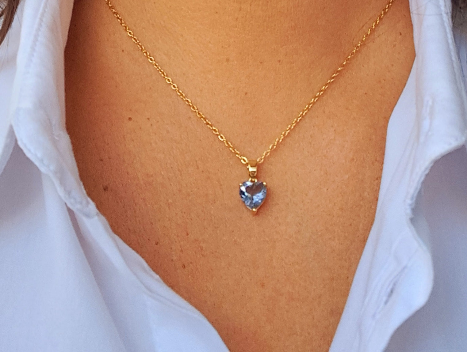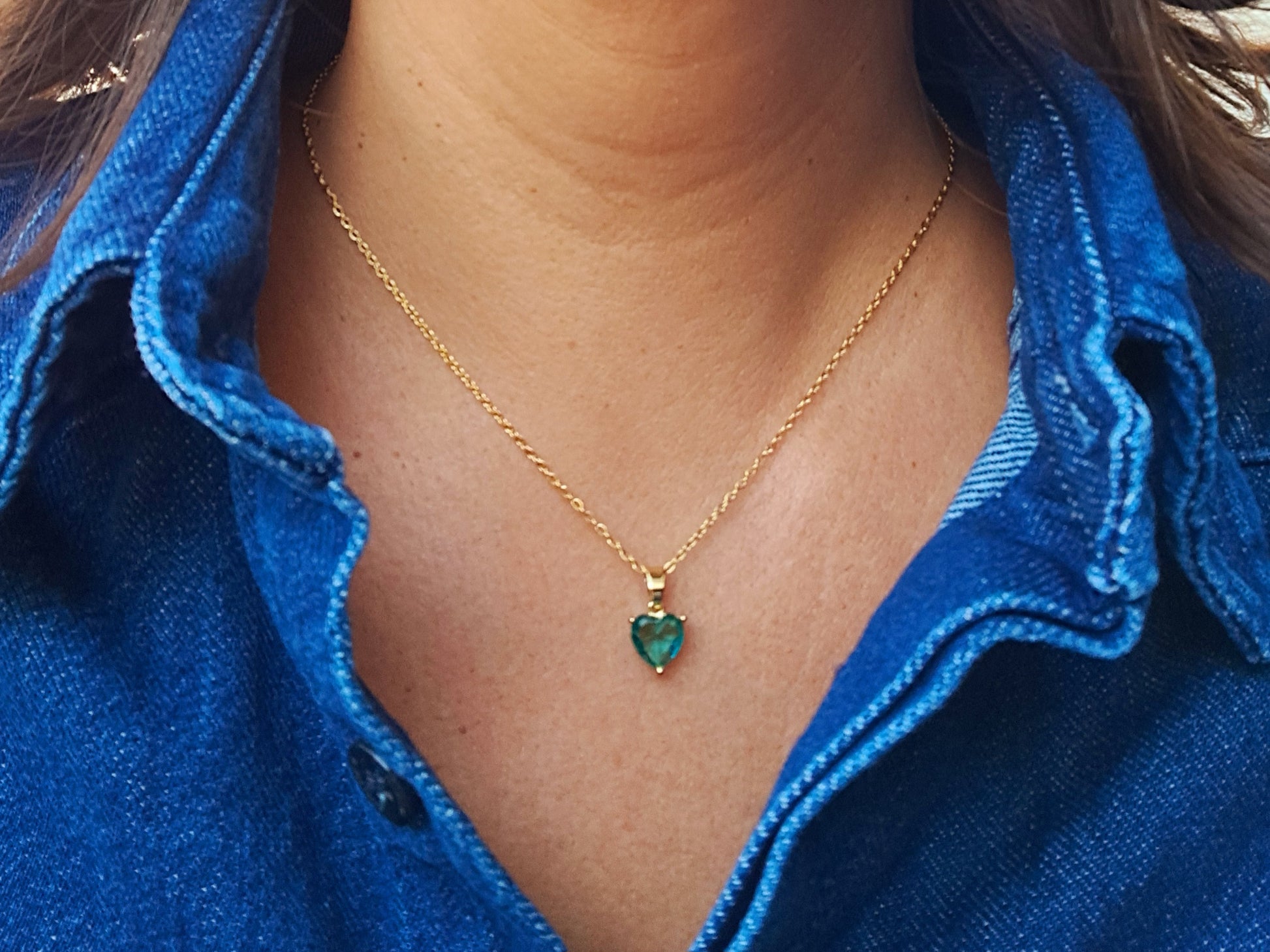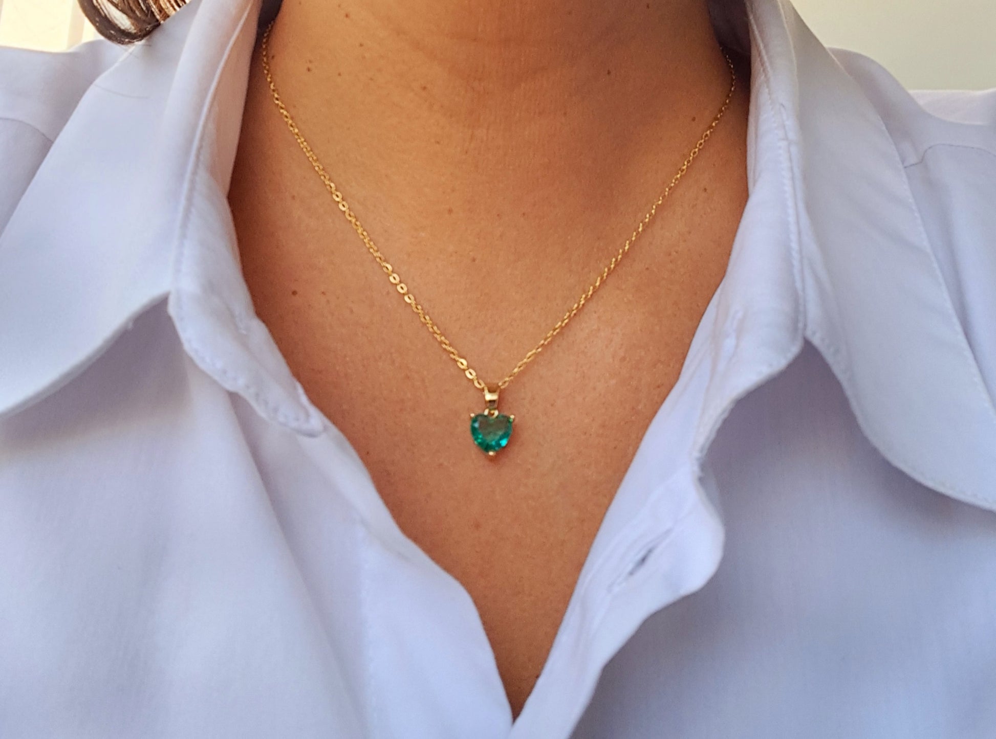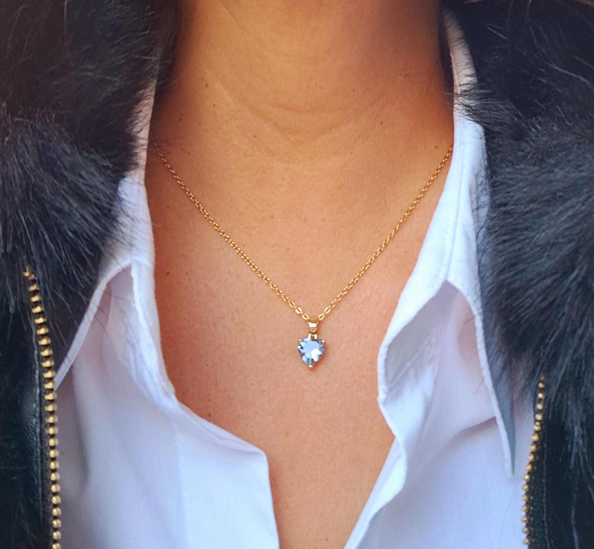 Um colar romântico com pingente em forma de coração, feito de aço inoxidável dourado e adornado com uma zircónia branca no centro. Ideal para looks românticos e delicados.