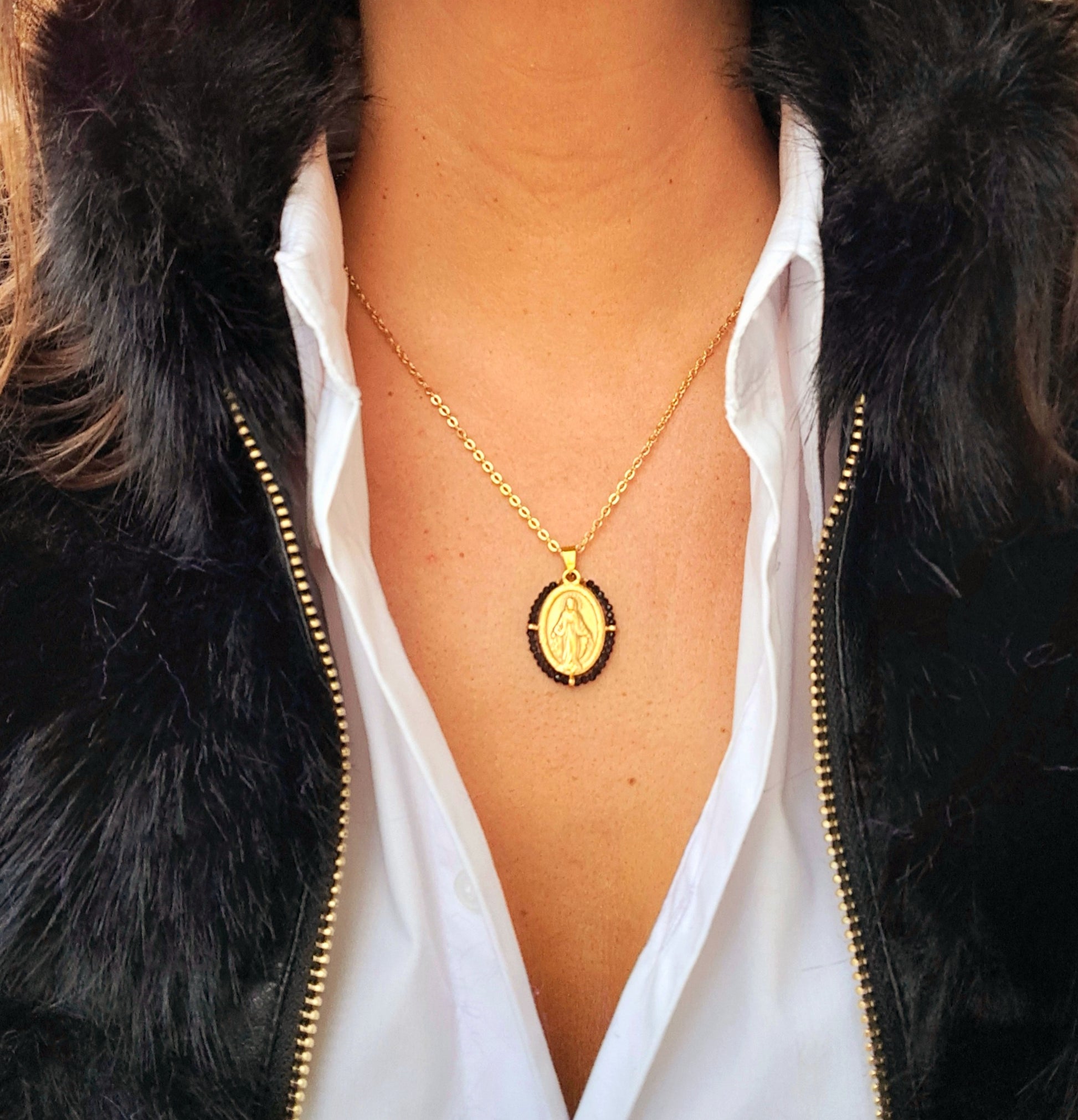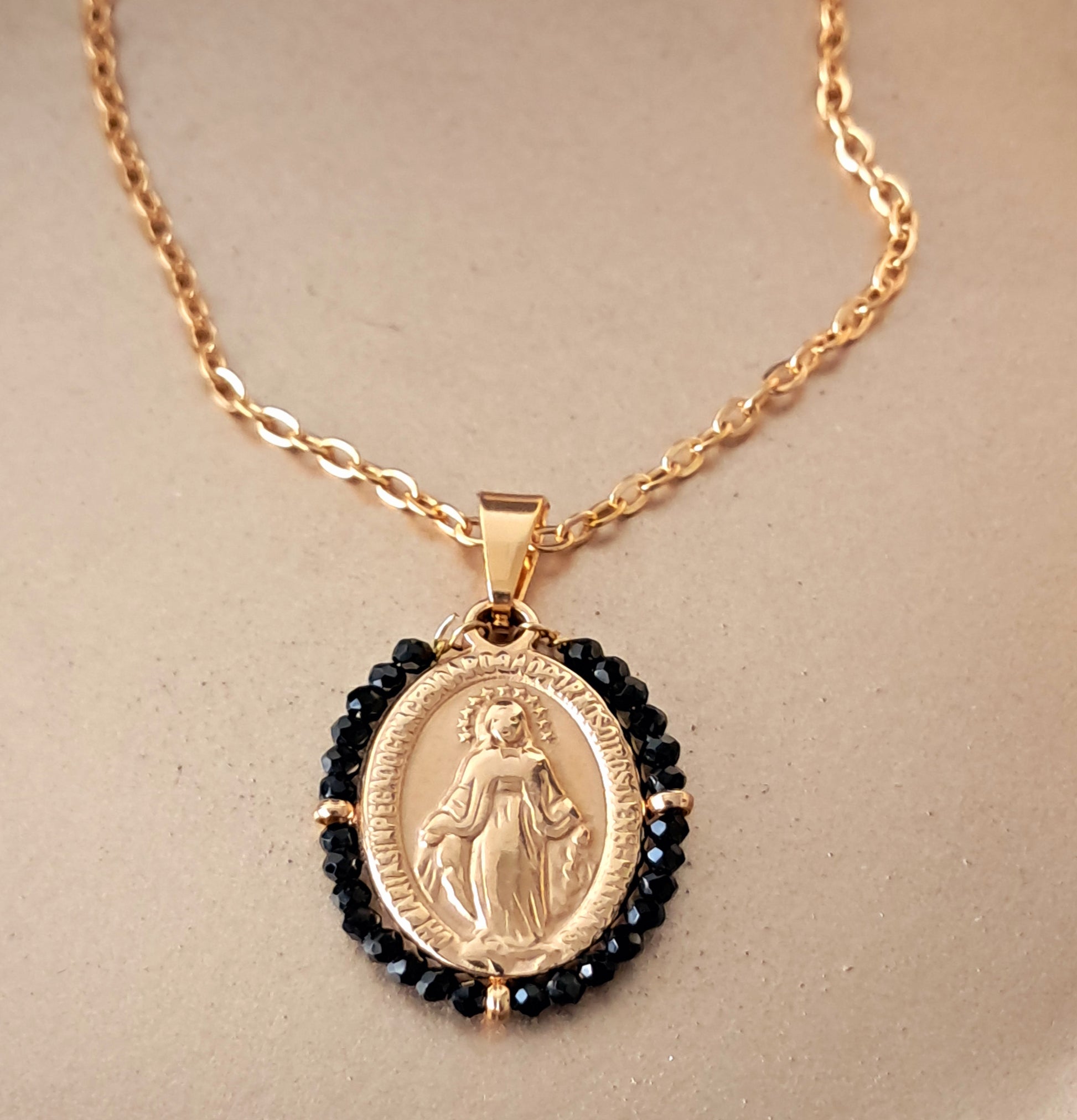 Com um pendente de cristal de 26x22 mm, este colar de 45 cm é uma peça clássica em aço inox dourado. Ideal para visuais elegantes.