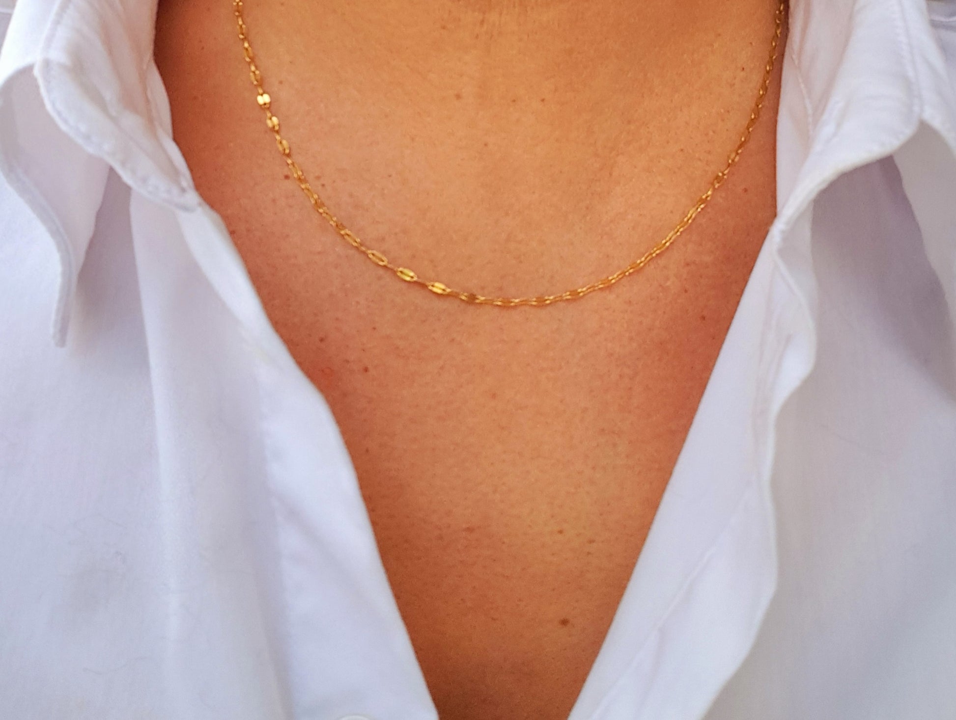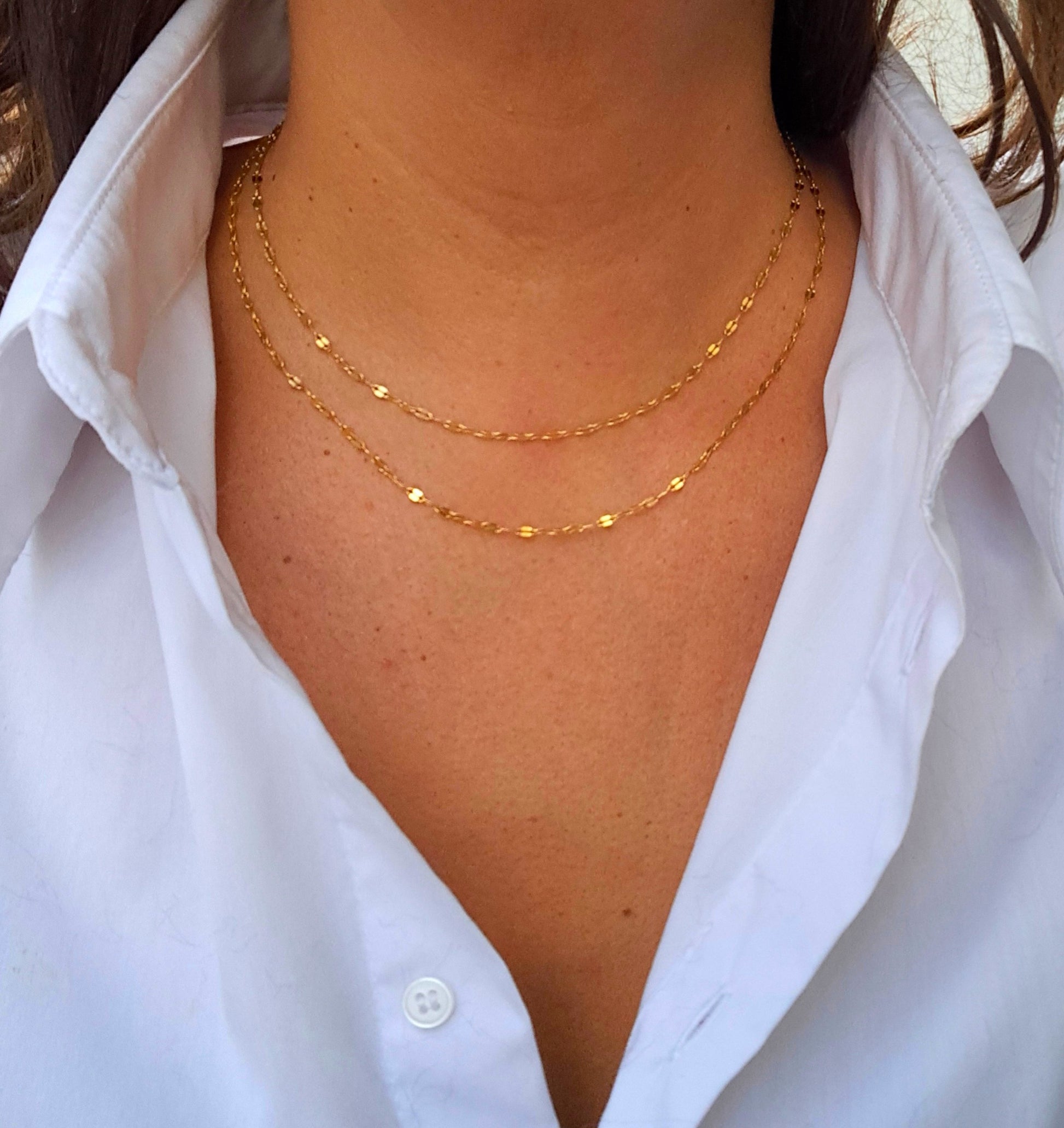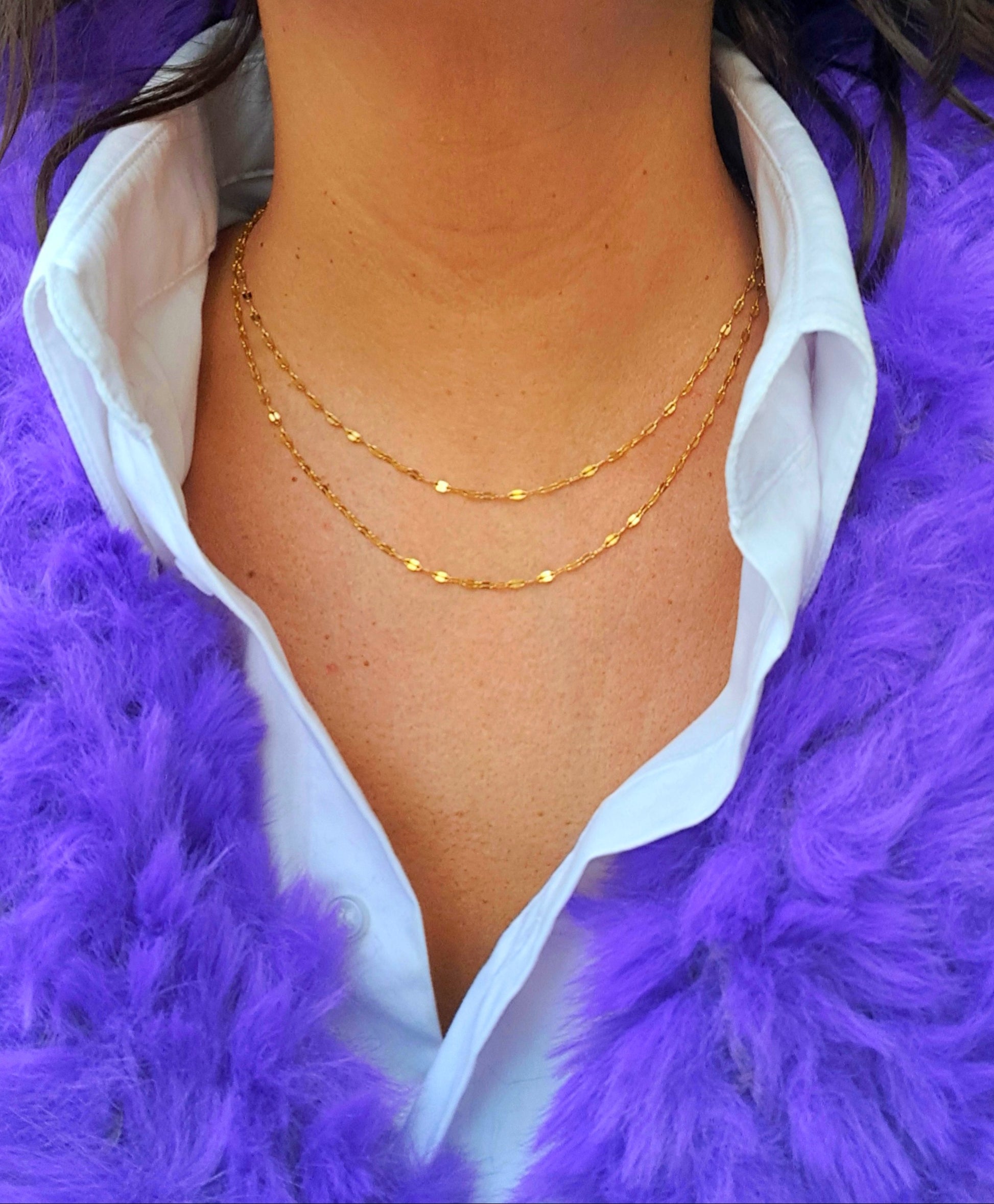 Duplo e com 42 cm de comprimento mais 5 cm de extensão, este colar de aço inox em dourado e prateado é perfeito para conjugar com outras peças.