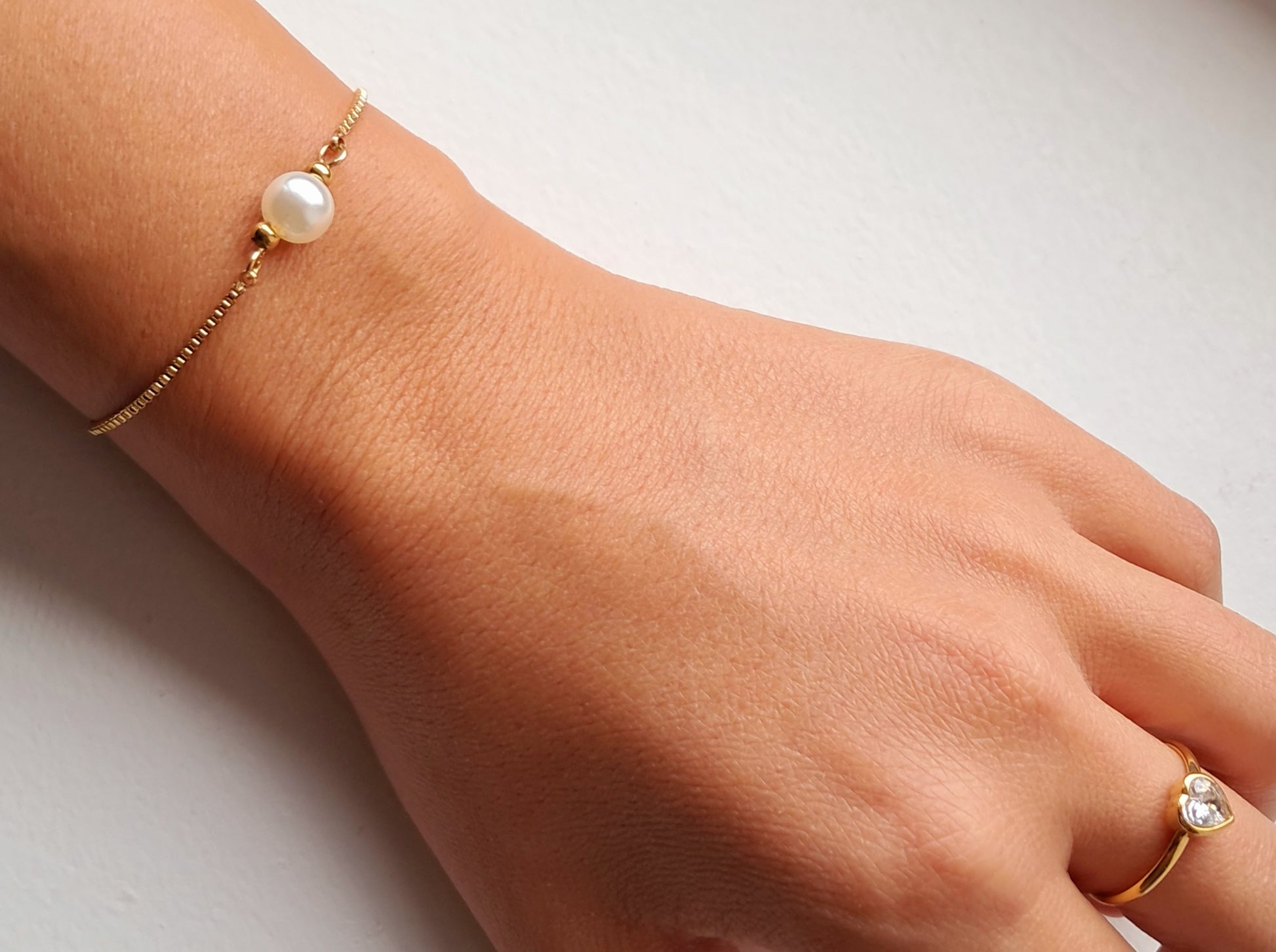 A Pulseira Beatriz é o equilíbrio perfeito entre simplicidade e elegância. Feita em aço inoxidável dourado, conta com uma pérola sintética central e dois pequenos detalhes em zircónia nas extremidades, tornando-a uma peça cheia de charme. O comprimento ajustável (16 cm + 5 cm de extensão) adapta-se ao pulso com conforto.