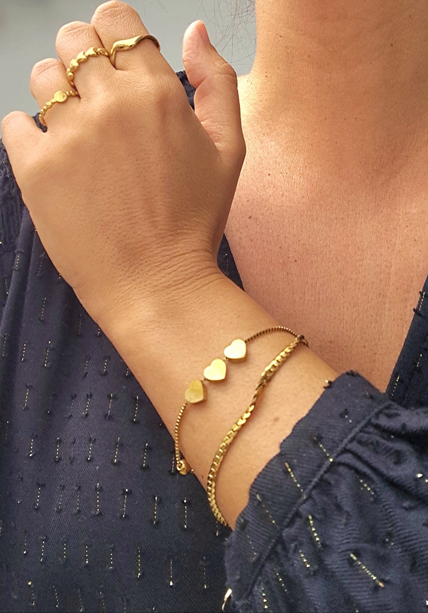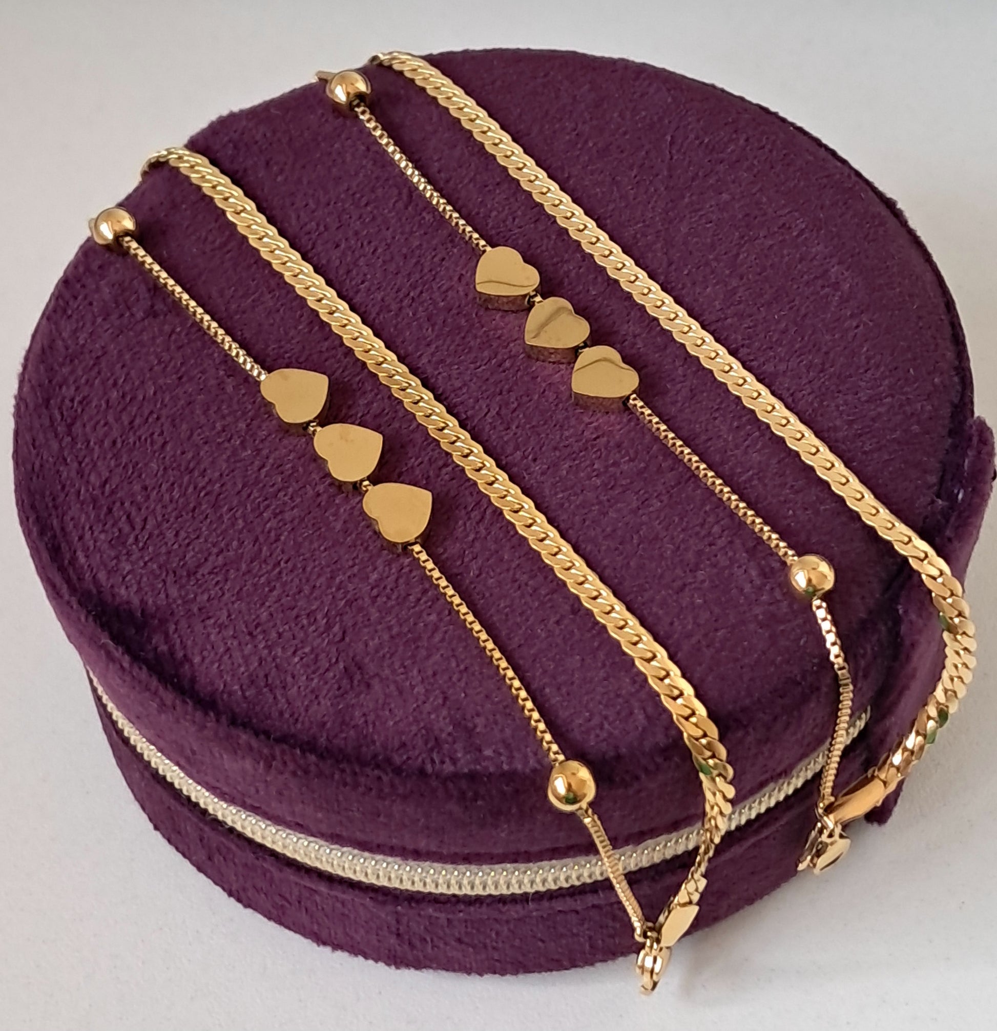 Com um design romântico, esta pulseira dourada em aço inox possui comprimento ajustável de 16cm + 4cm de extensão e fecho de mosquetão, ideal para qualquer ocasião.